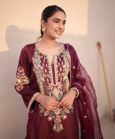 Pehnava style Purple Heavy Embrodered Georgette Kurtie Set