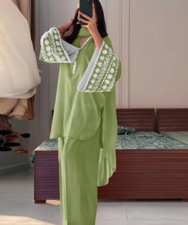 Pehnava Style Pure Natural Crepe With Embroidery Work Kurtie Palazzo And Duppatta