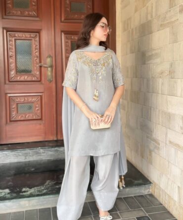 Pehnava Style Pure Natural Crepe With Embroidery Work Kurta Farshi Palazzo And Dupatta