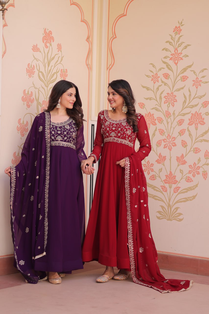Pehnava Style Faux Blooming With Beads Embroidery Work Gown & Duppatta