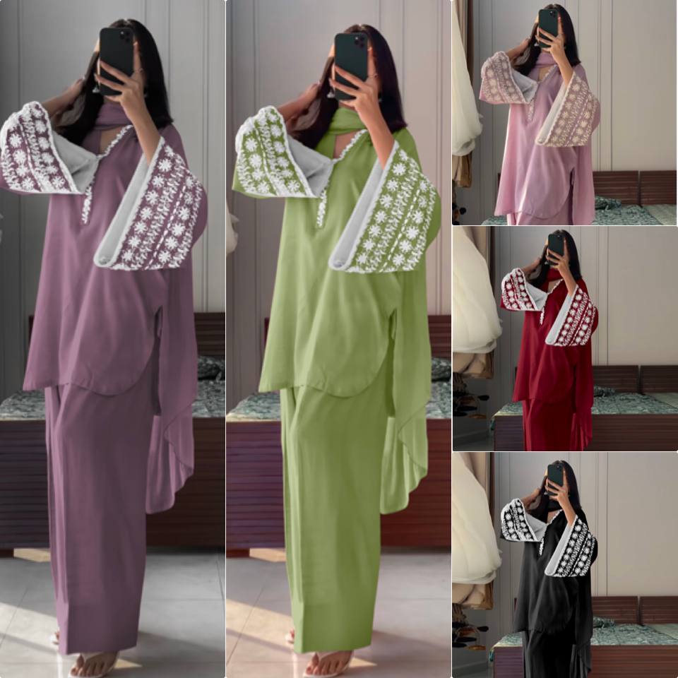 • Pehnava Style Pure Natural Crepe With Embroidery Work Kurtie Palazzo And Duppatta
